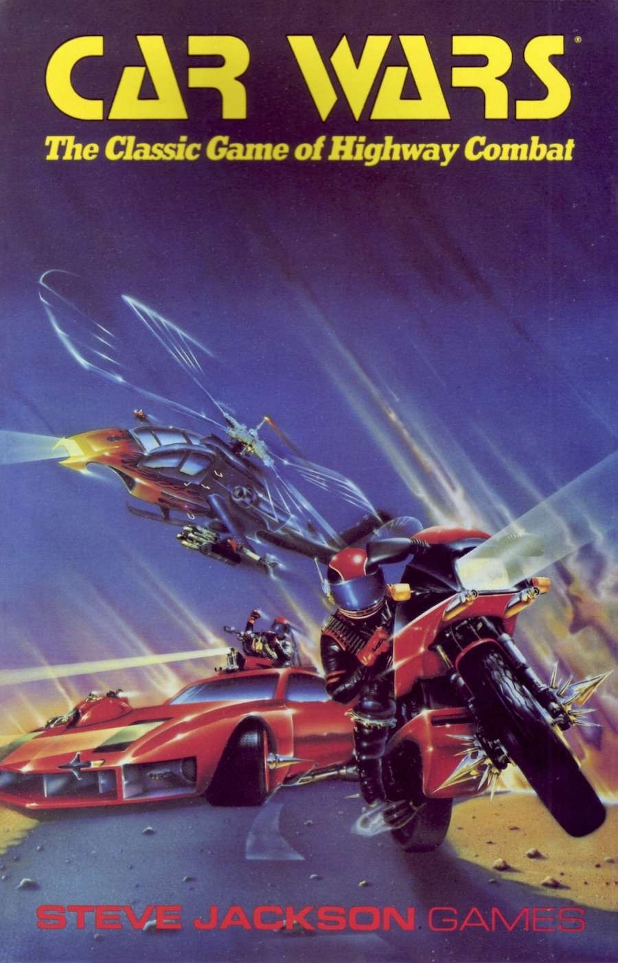 I had a copy of Car Wars in the before-times, but I never played it. Far too many tiny bits of cardboard, not enough miniatures: it put me off (although that retro cover art is pretty groovy)